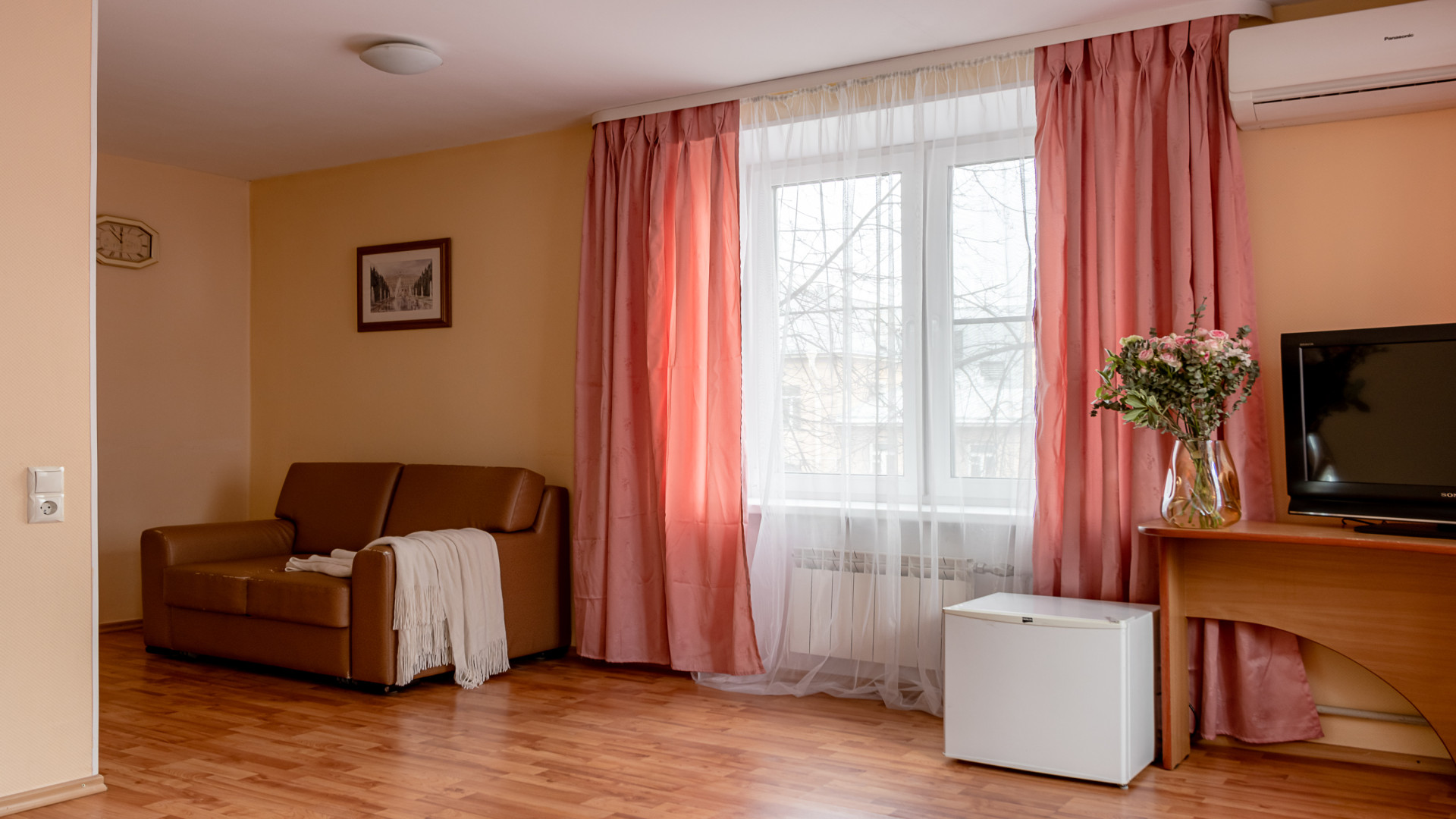 - В номере: душ, туалет, ТВ, холодильник, фен, телефон, электрочайник, односпальная кровать, двуспальная кровать, диван (Одноместный)