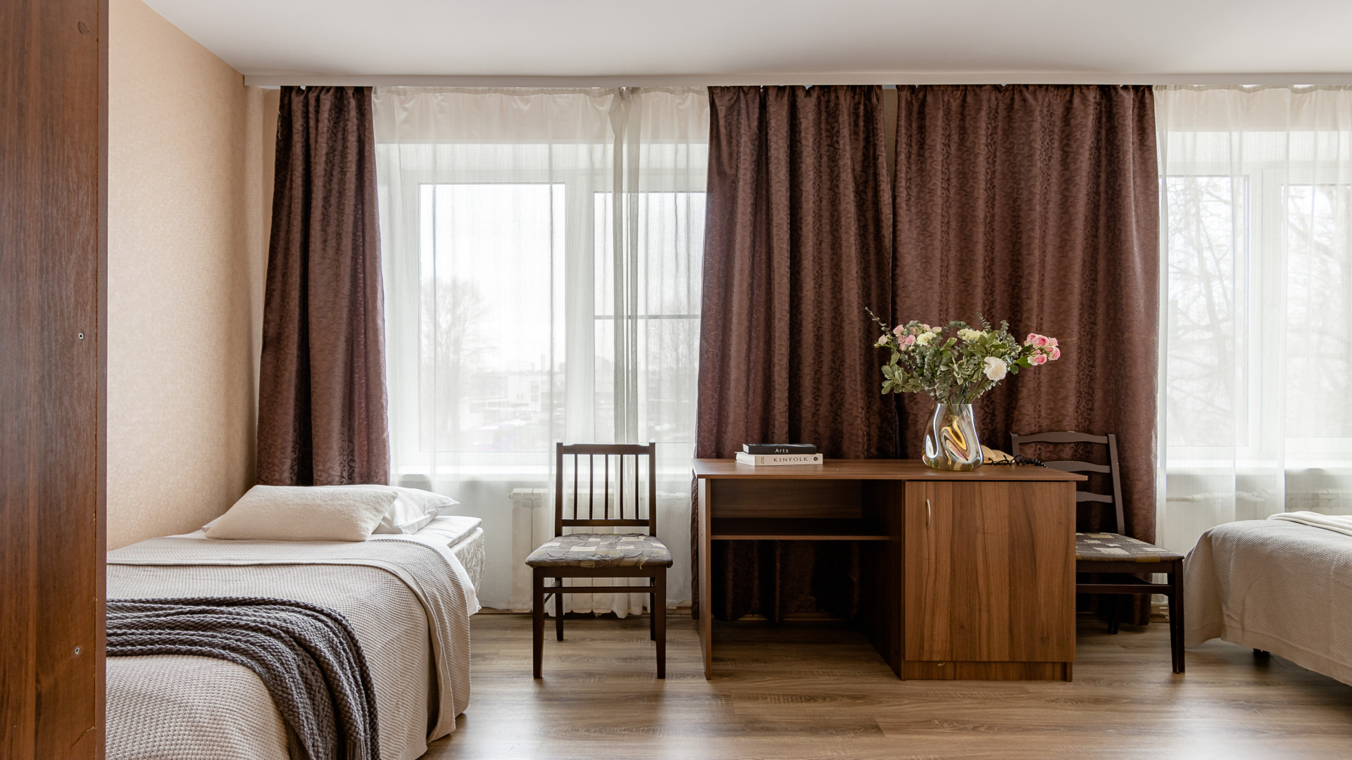 Номера на Курской — это городской отель, расположенный в историческом здании на Курской улице, в спокойном районе недалеко от центра Санкт-Петербурга. Дом имеет богатое прошлое и хорошо известен старожилам города как гостиничный объект советского периода. Сегодня пространство полностью переосмыслено и адаптировано под современные требования к комфорту и функциональности. Отель органично вписывается в городскую ткань Петербурга — немного строгий, но сдержанный, тёплый по настроению. Мы сохранили основательность здания и добавили аккуратный, сдержанный интерьер без лишних деталей. Отель подойдёт тем, кто ценит тишину, практичность и удобное расположение. Отличный вариант для командировок, самостоятельных поездок и коротких остановок в городе.