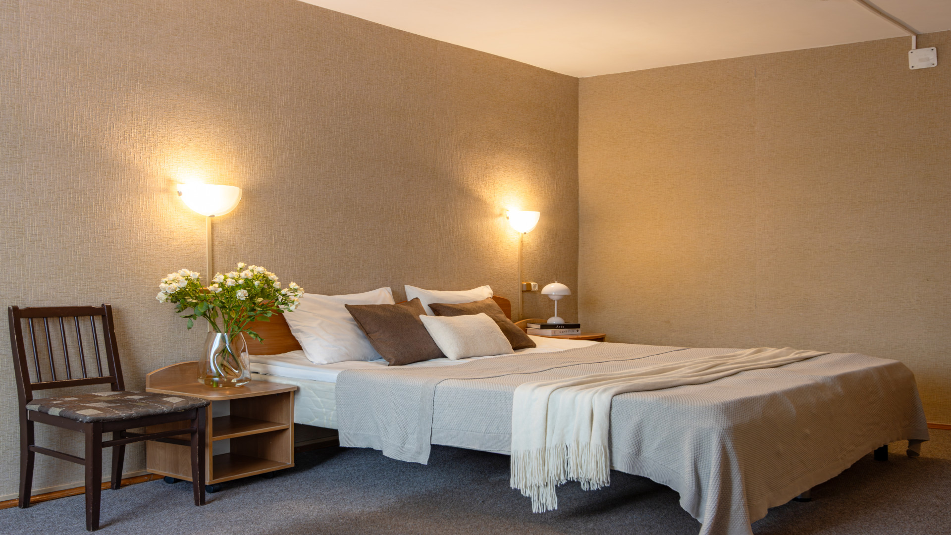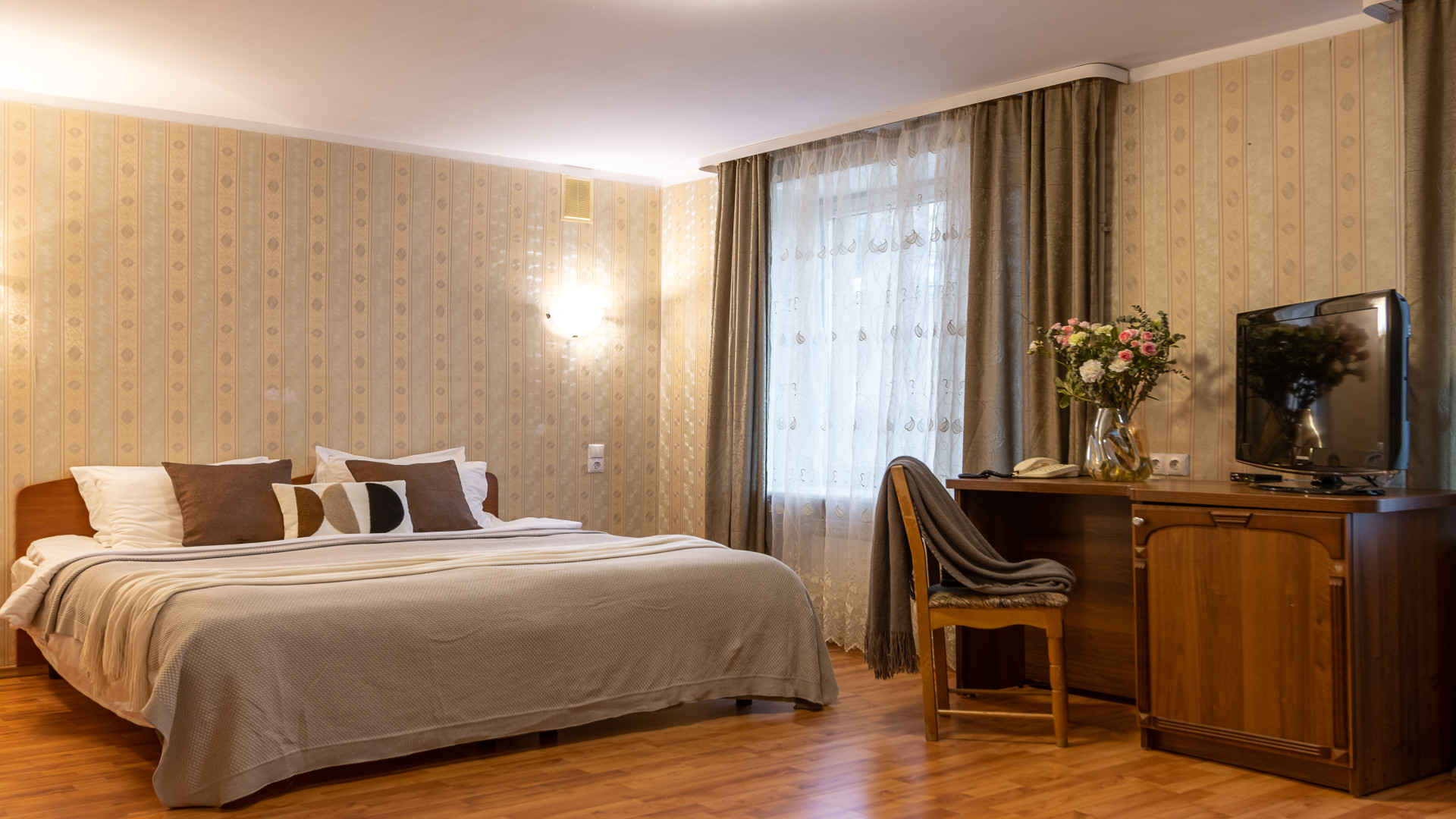 - В номере: душ, туалет, ТВ, холодильник, фен, телефон, электрочайник, односпальная кровать, двуспальная кровать