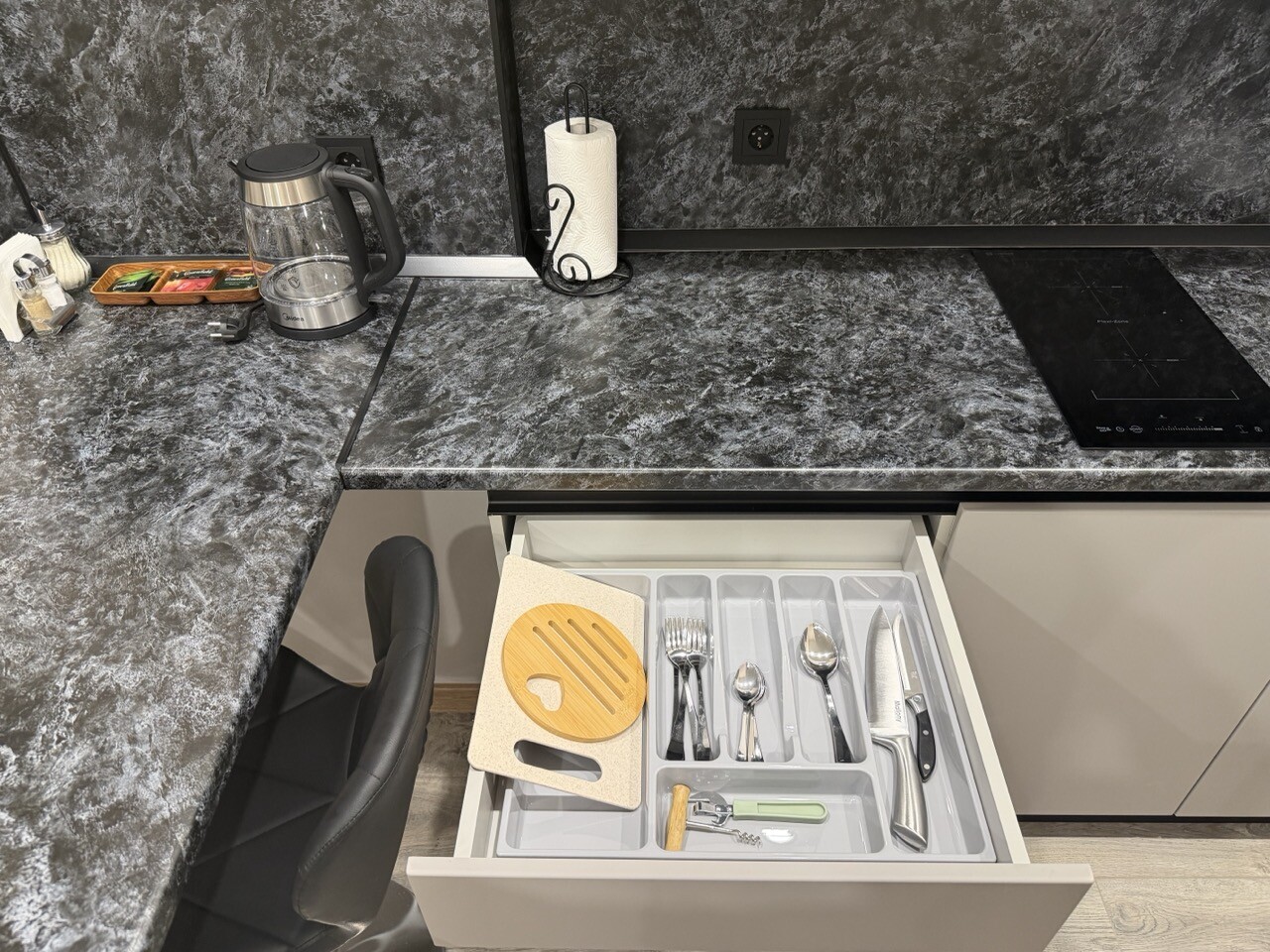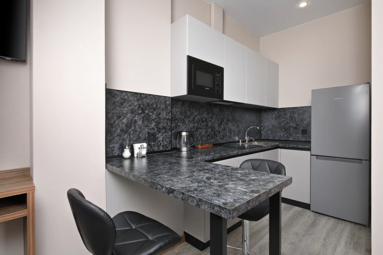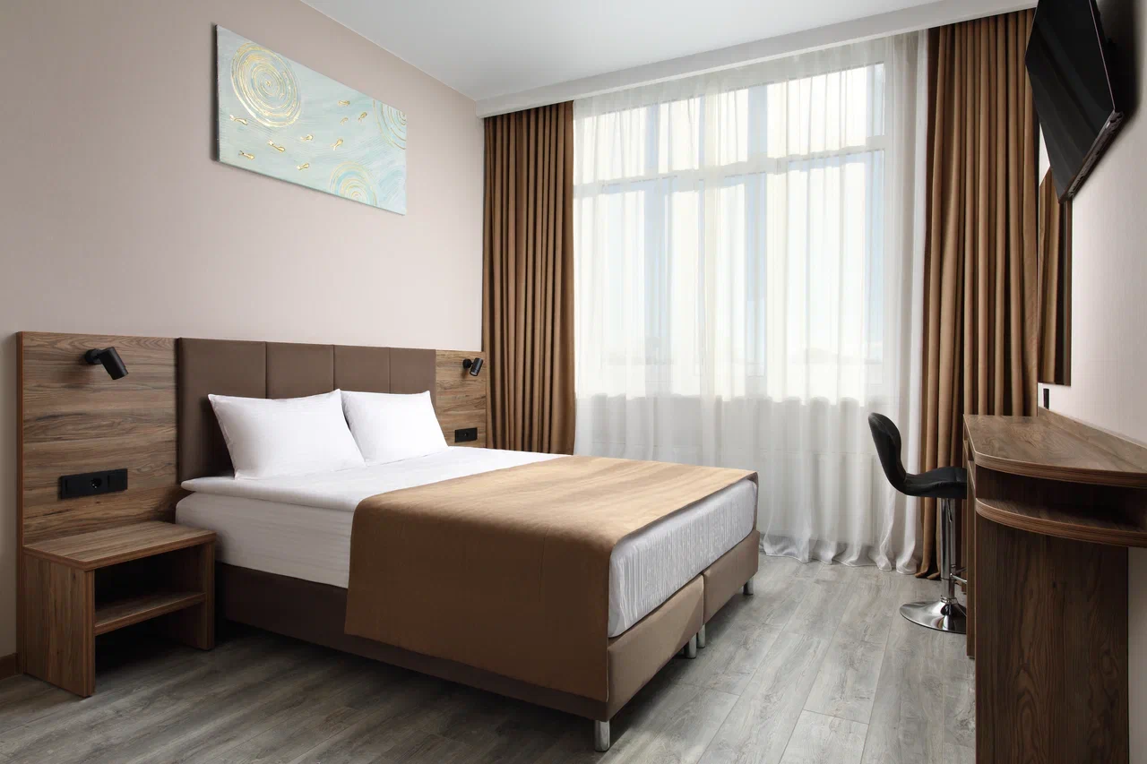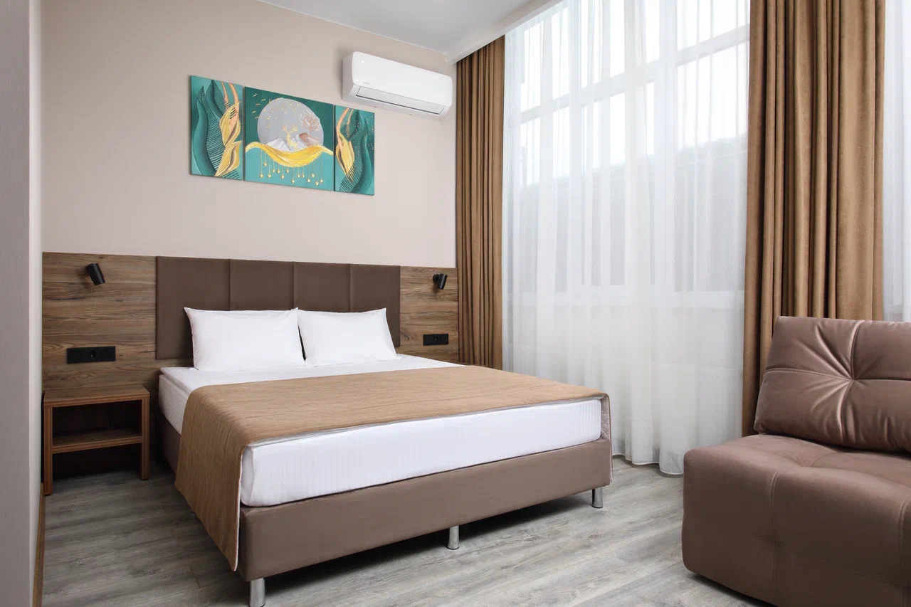 Для проживания гостям предлагаются номера, оборудованные всем необходимым для комфортного проживания. В номере: комфортабельные спальные места, кондиционер, телевизор, рабочее место, кухня с обеденной зоной, оборудованная всей необходимой техникой и посудой, сейф, санузел с душем и стиральной машиной.