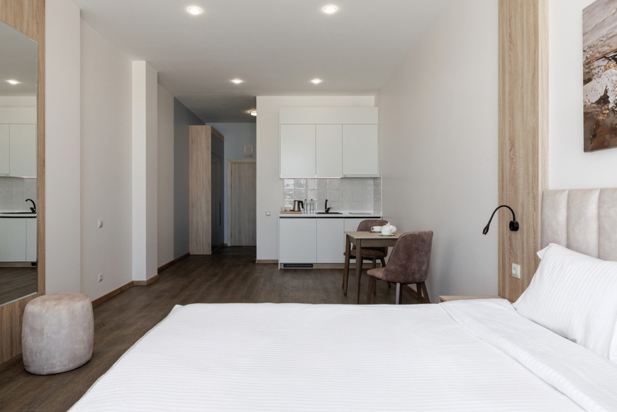 В парк-отеле 307 современных номеров различных категорий, каждый из которых оборудован кухней. Из окон всех номеров открываются великолепные панорамные виды.