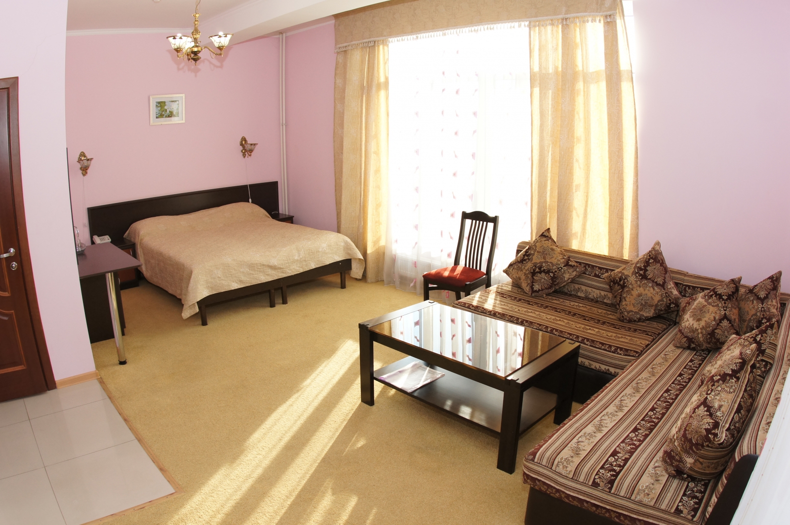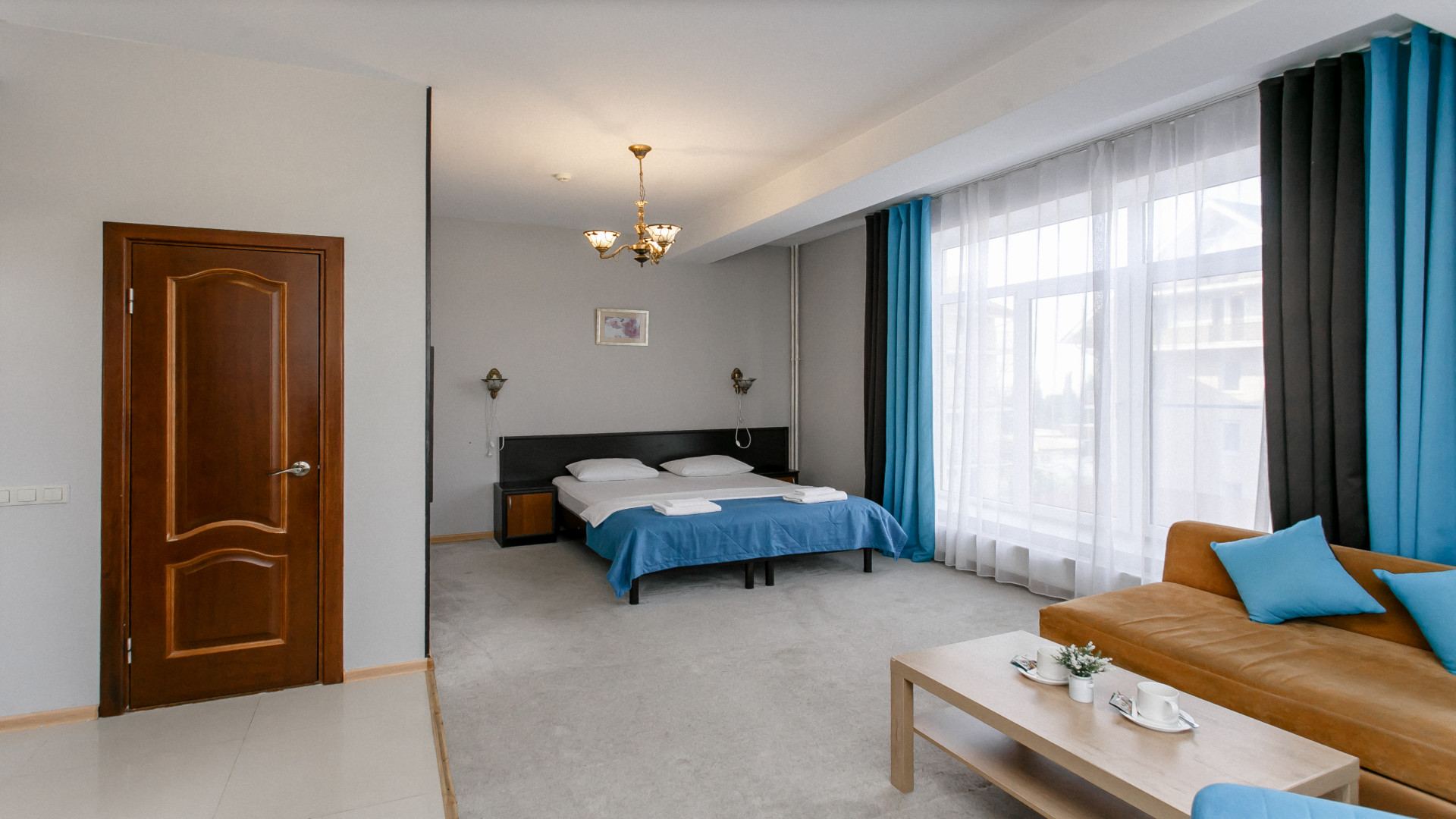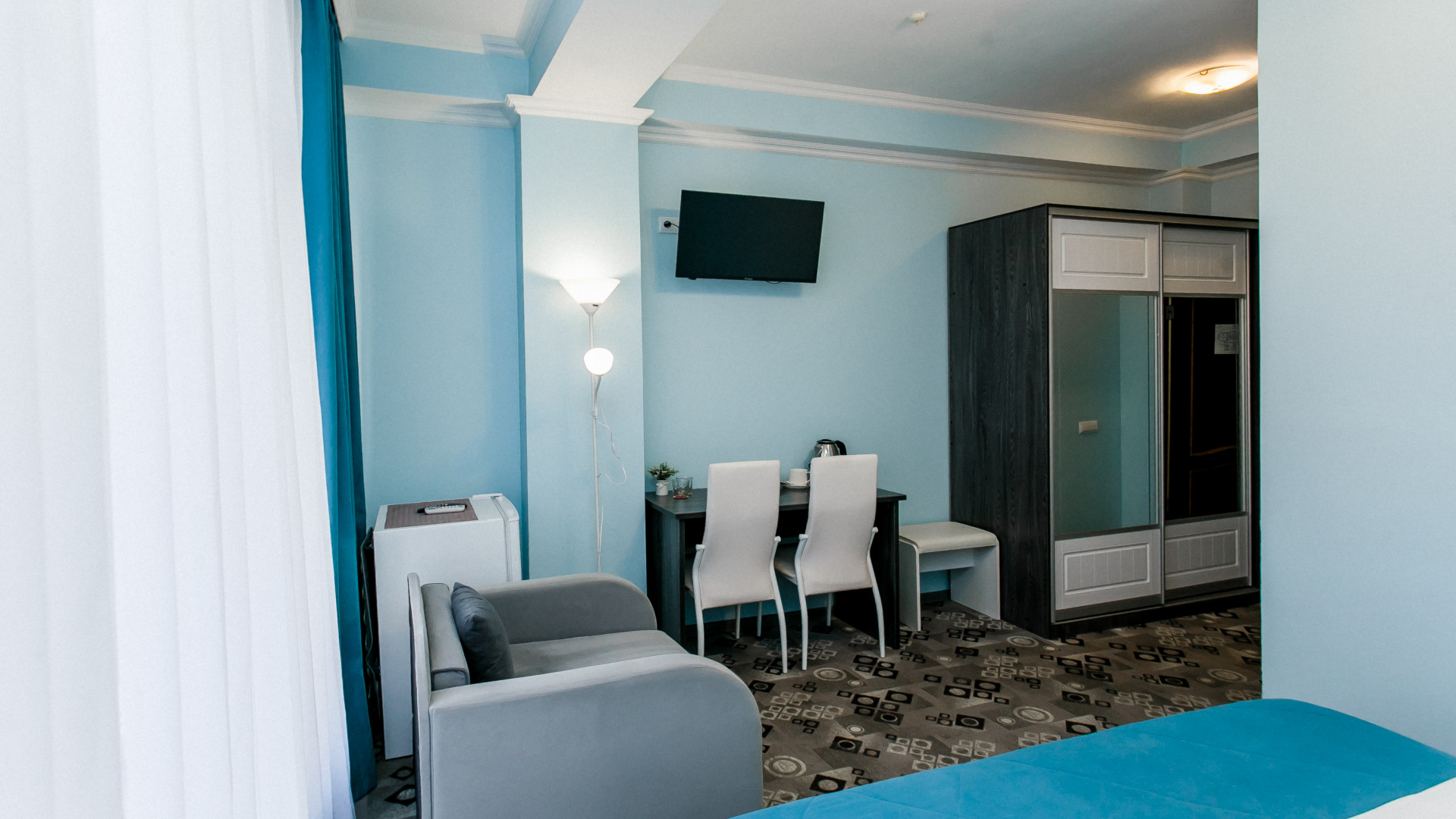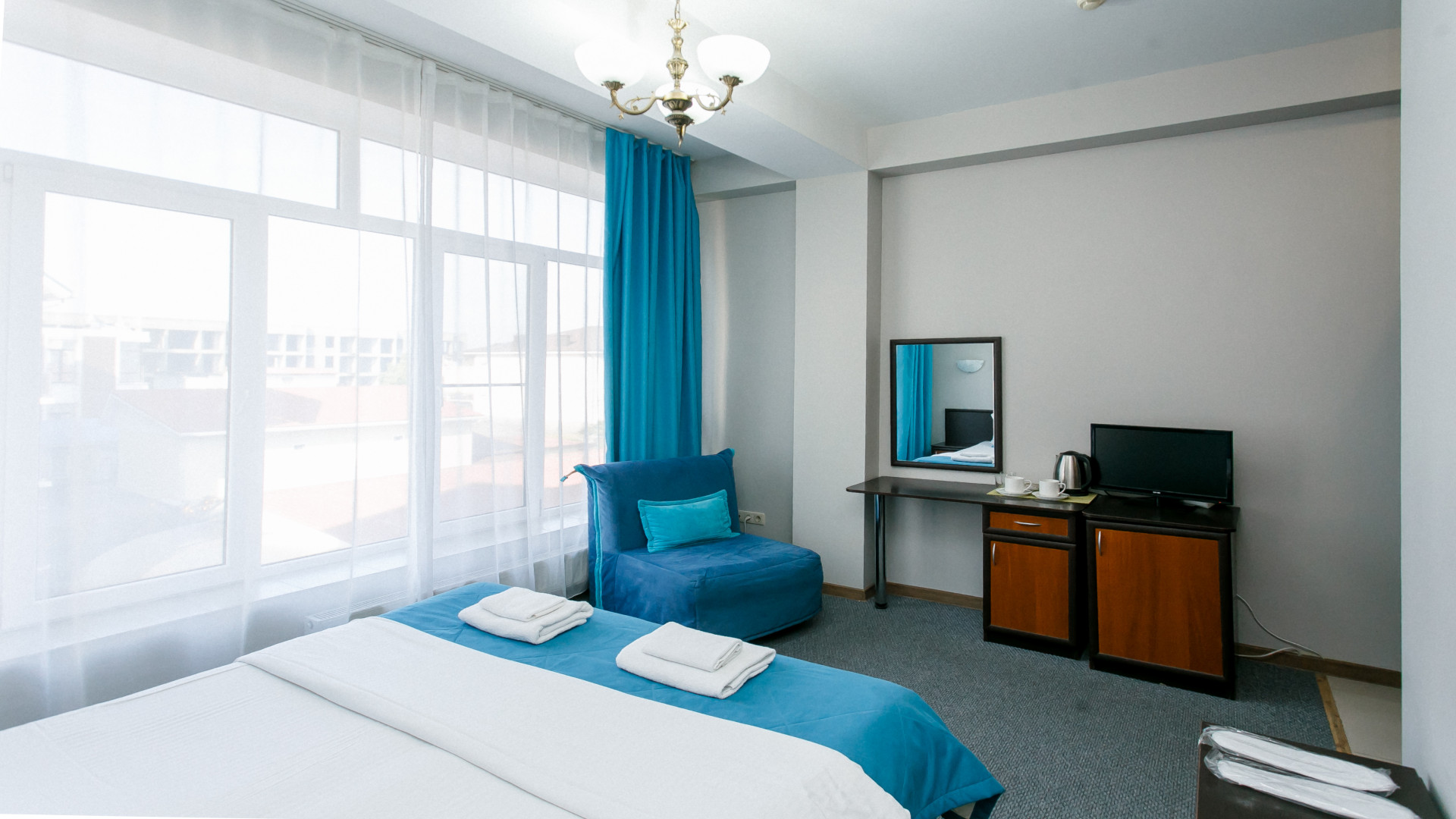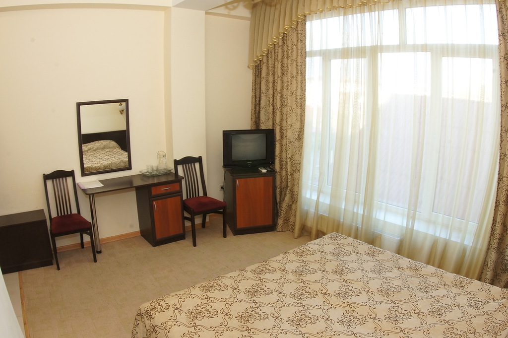 На выбор гостей предложены новые современные номера различных категорий: номер-студия, стандартный, семейный, люкс. Во всех номерах есть собственная ванная комната, бесплатный доступ Wi-Fi в Интернет, телевизор, холодильник, сплит-система, телефон. Из окон открывается великолепный вид на море или горы. Отель оснащен лифтом.