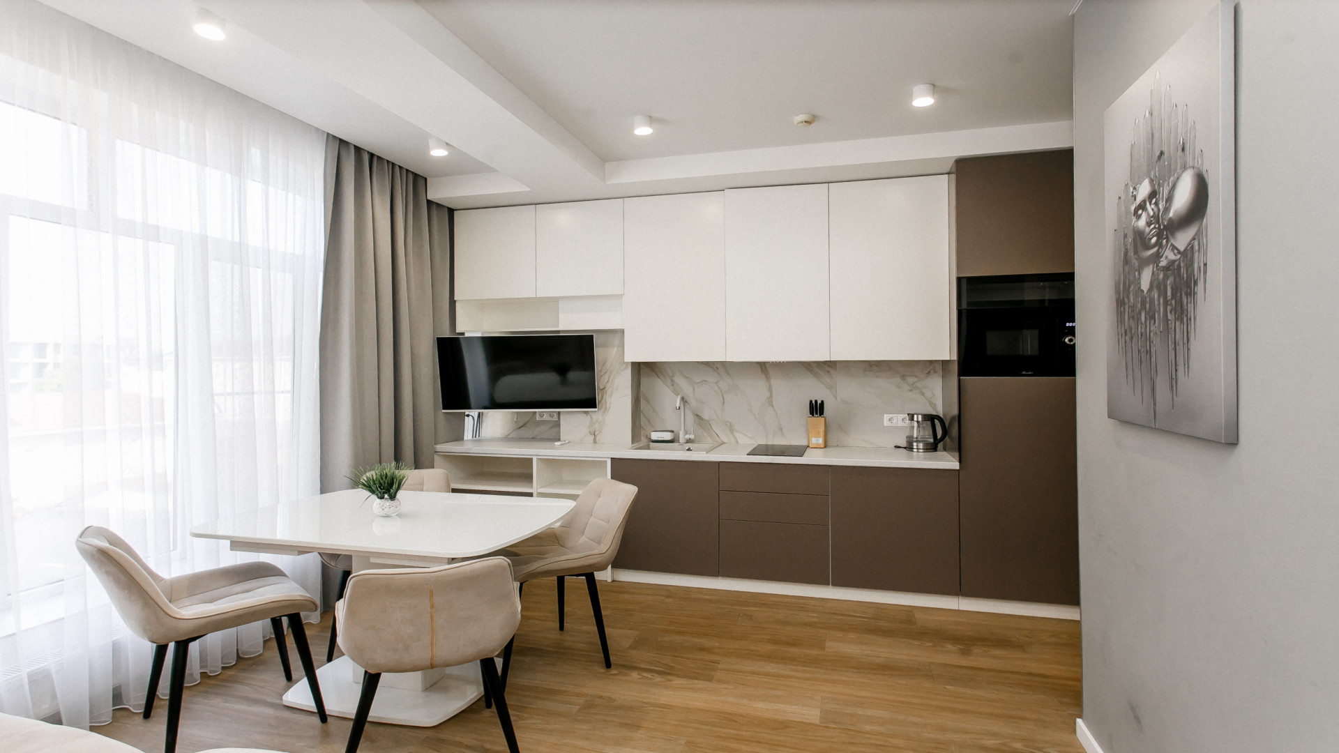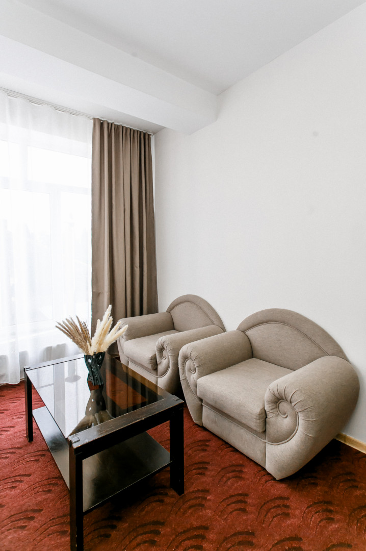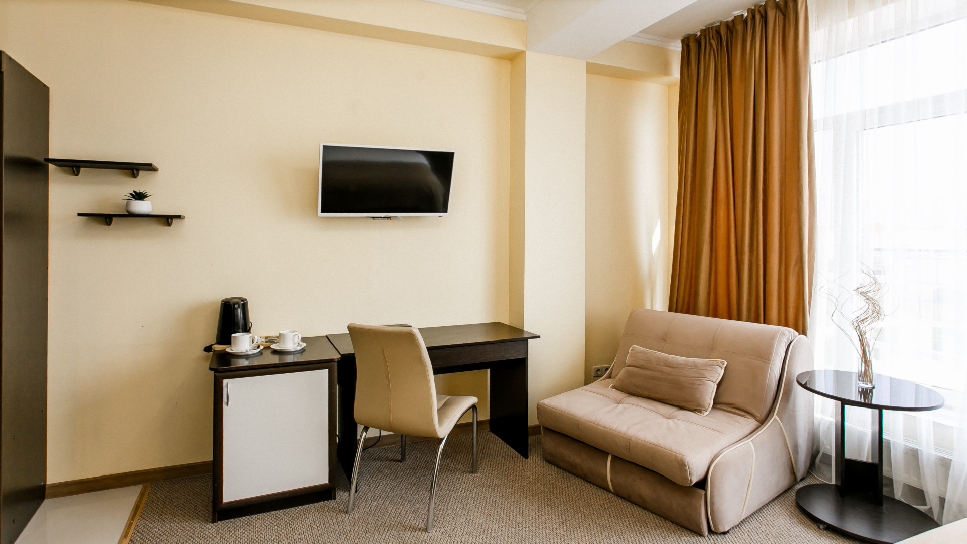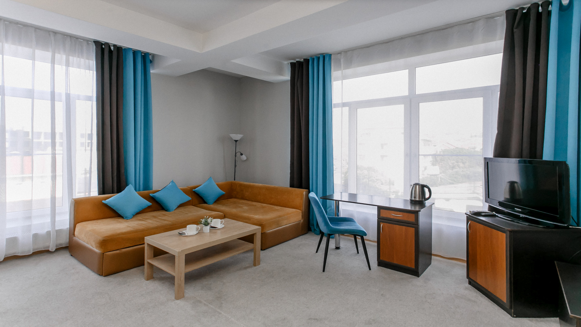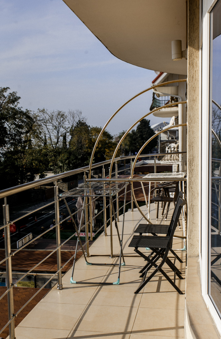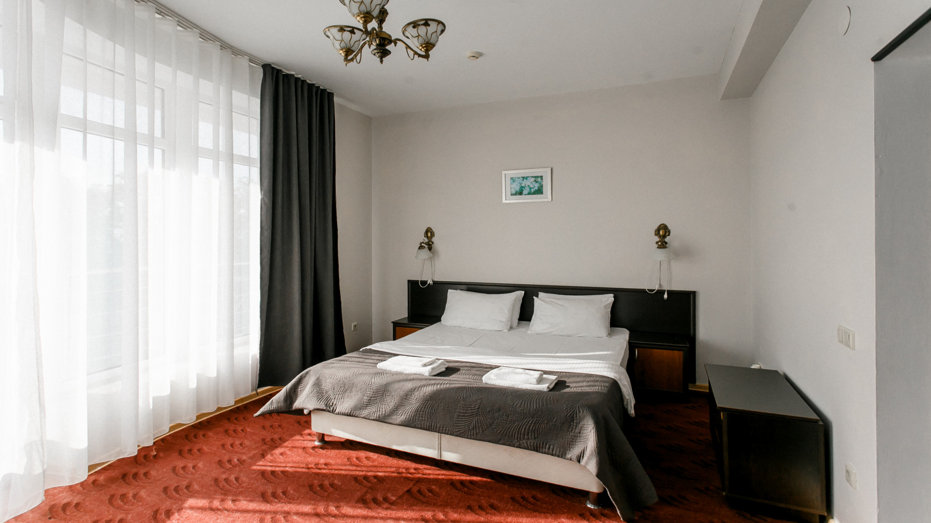 На выбор гостей предложены новые современные номера различных категорий: номер-студия, стандартный, семейный, люкс. Во всех номерах есть собственная ванная комната, бесплатный доступ Wi-Fi в Интернет, телевизор, холодильник, сплит-система, телефон. Из окон открывается великолепный вид на море или горы. Отель оснащен лифтом.