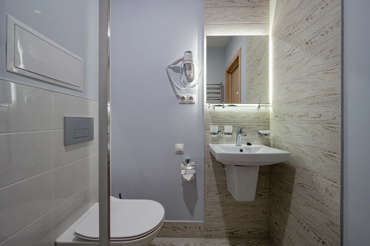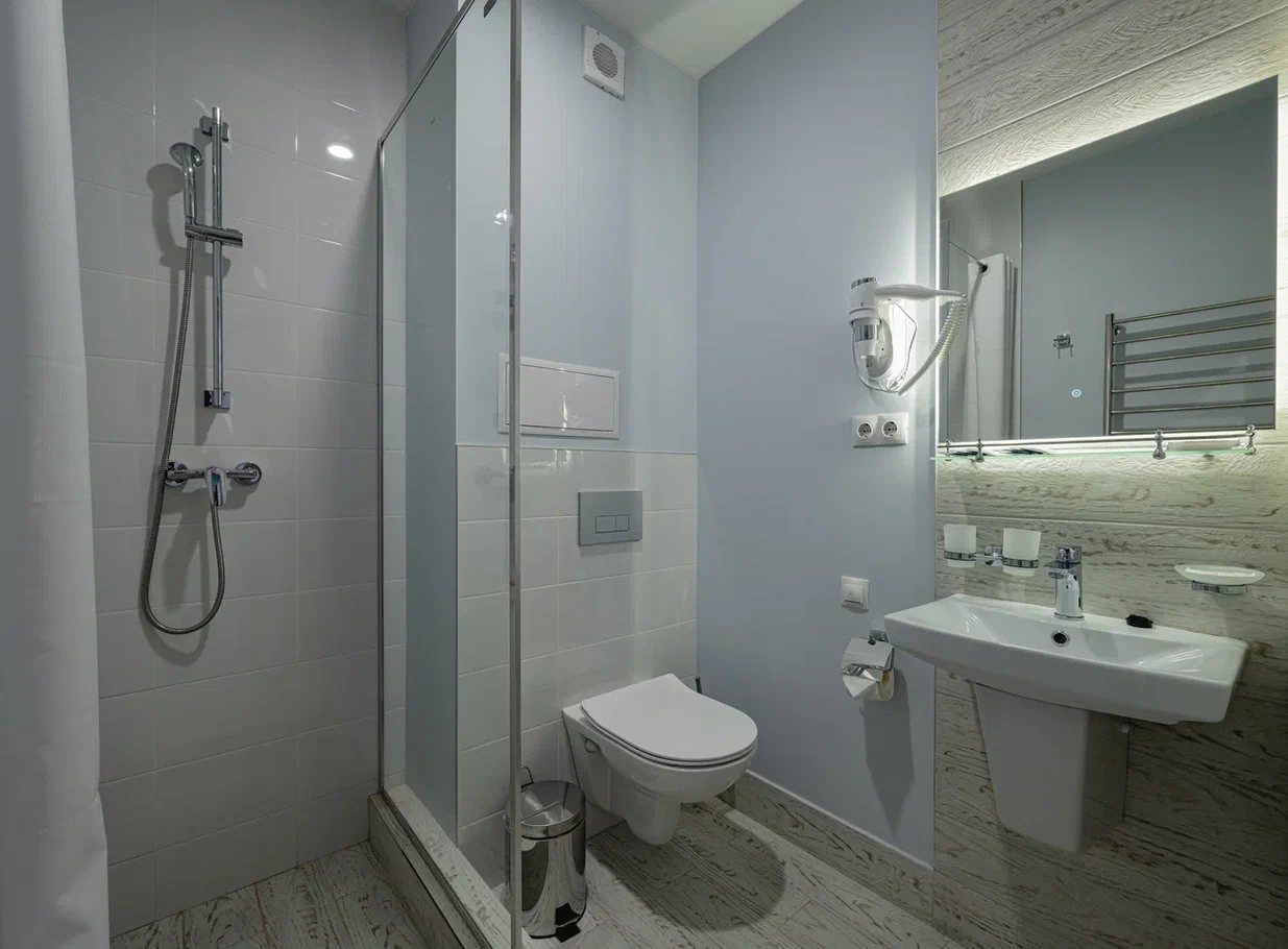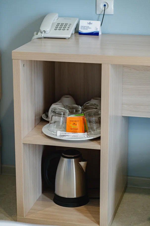 • Комплектация номера: мини парфюмерия, полотенца, тапочки, чайный набор;